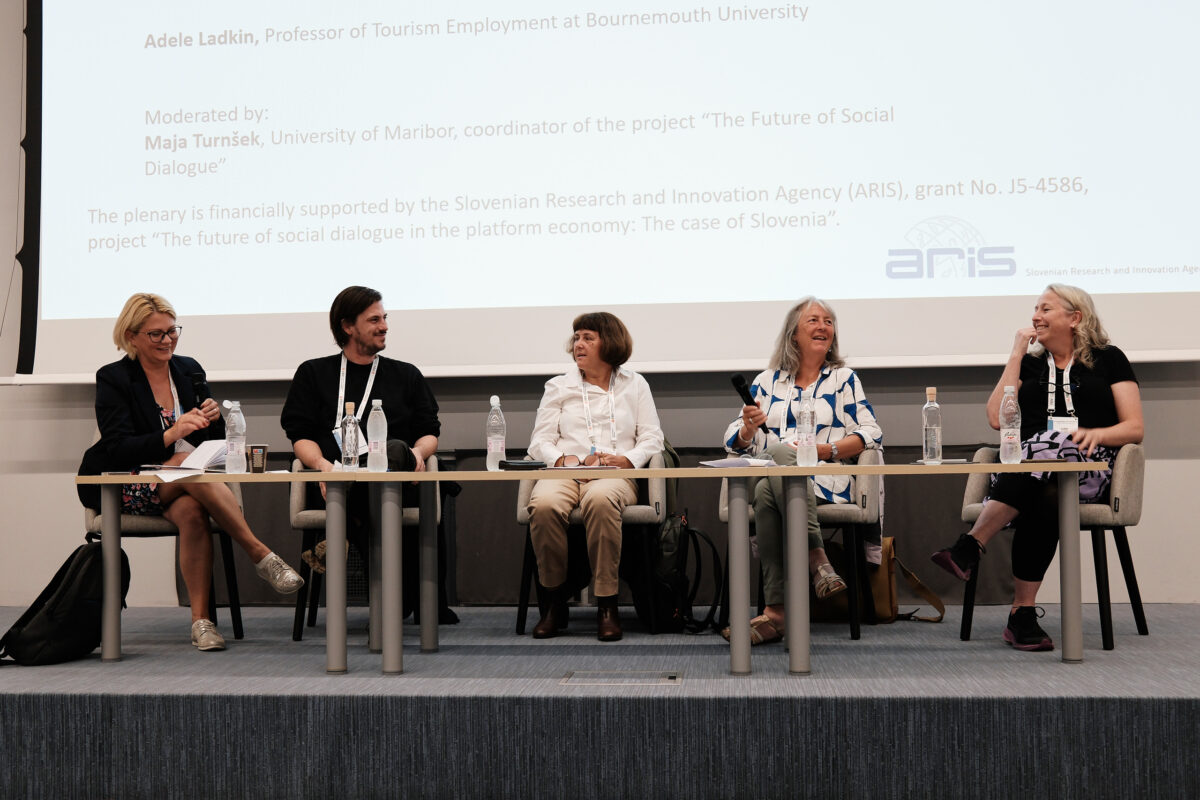 The conference also featured two open plenary lectures and a roundtable. Professor Kylie Jarrett focused on the characteristics of digital labor in her lecture, while CDK head Slavko Splichal addressed structural changes in the public sphere and the rise of the “gig public.” At the plenary roundtable on platform work—emerging as one of the potential employment models of the future—participants included Adele Ladkin, Kylie Jarrett, Jernej Kastelic, and Maja Breznik.